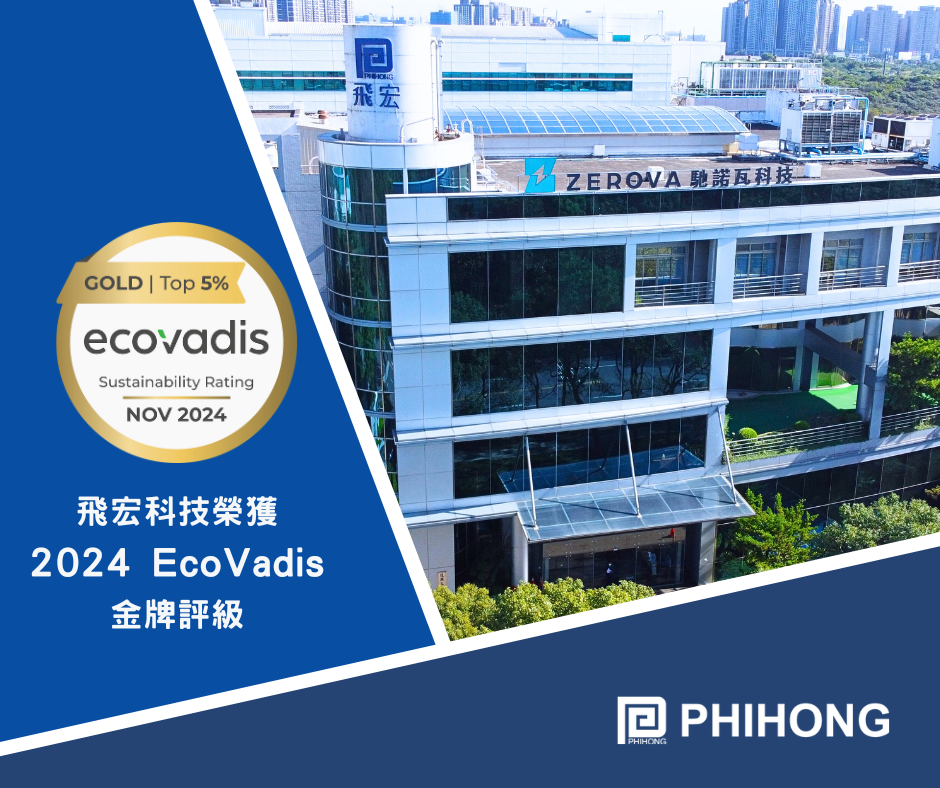 恭賀!飛宏科技榮獲2024年EcoVadis 金牌評級,為被評估的所有企業中排名前5%的企業